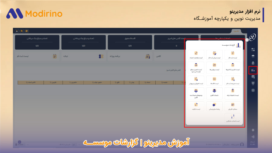 08/07/2025 08/07/2025Categories Uncategorizedآموزش مدیرینو | گزارشات موسسهمدیرینو نرم افزار مدیریت مدارس و آموزشگاه ها است که به شما در مدیریت بهتر و ساده تر کمک خواهد […]